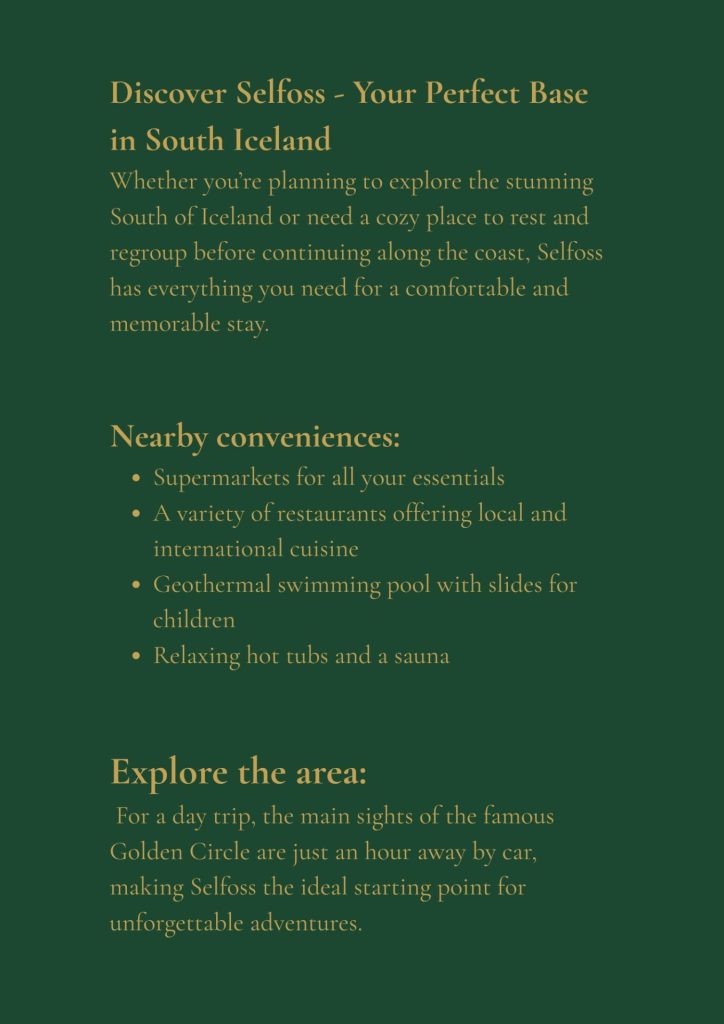 It was one of the most amazing hostels I've ever been! I planned to stay 1 night but stayed 3 at the end haha. The staff was really friendly, the kitchen was so so well equipped and beyond expectations, the hot tub was amazing, the rooms and showers very pretty and clean... cheap hostel next to the main streat and perfect to catch a ride or start a tour to the south or golden circle! Thank you